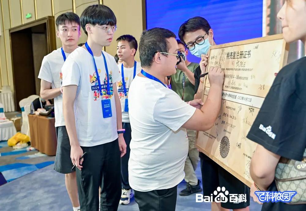开营仪式上,百科校园同学们在“特亮星注册证书”上签名,一颗恒星被命名为“百度百科校园夏令营十周年纪念星”,浪漫且有意义,百科校园的每一位成员都在不同的领域闪闪发光。